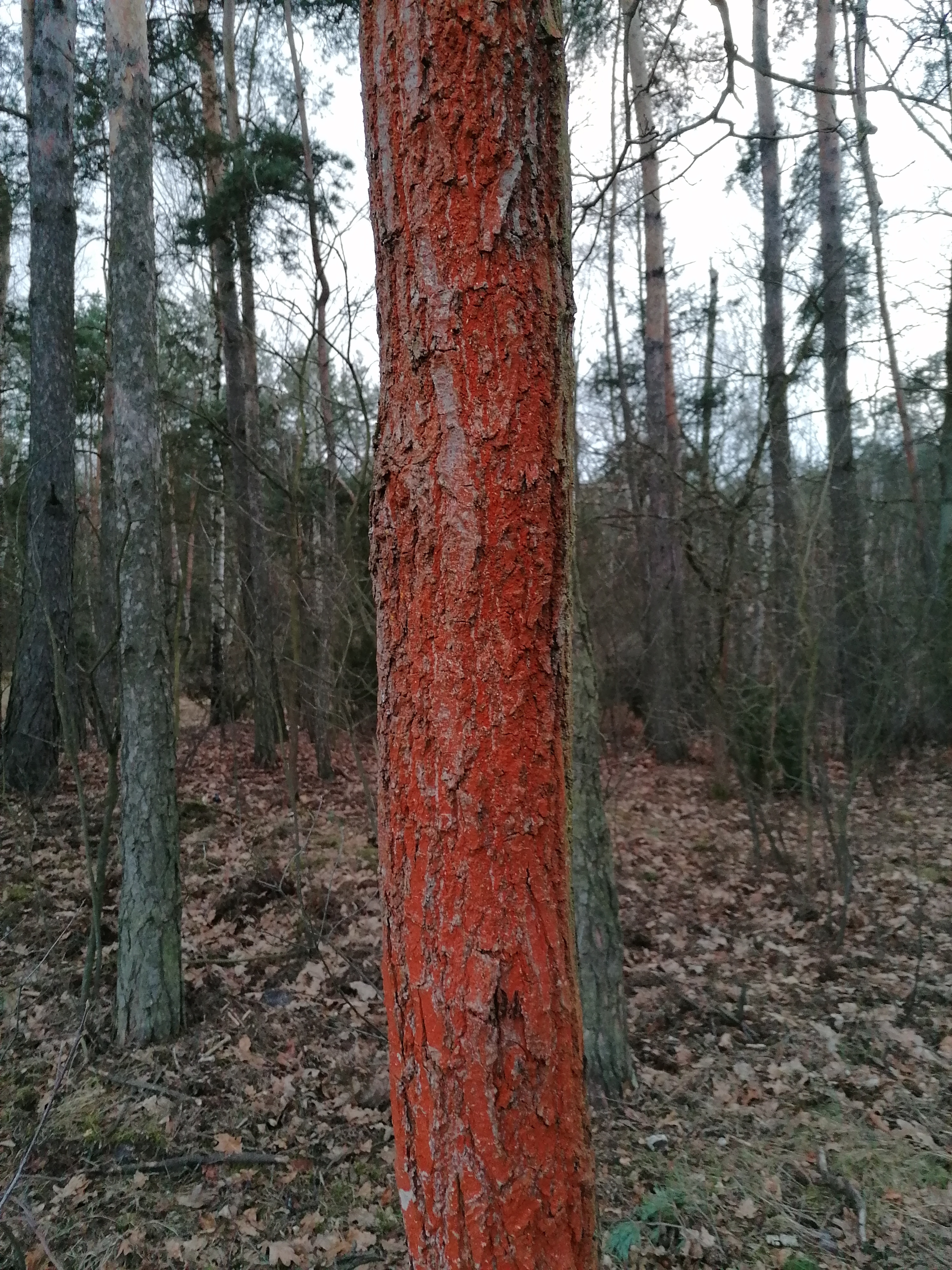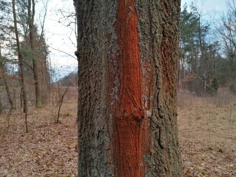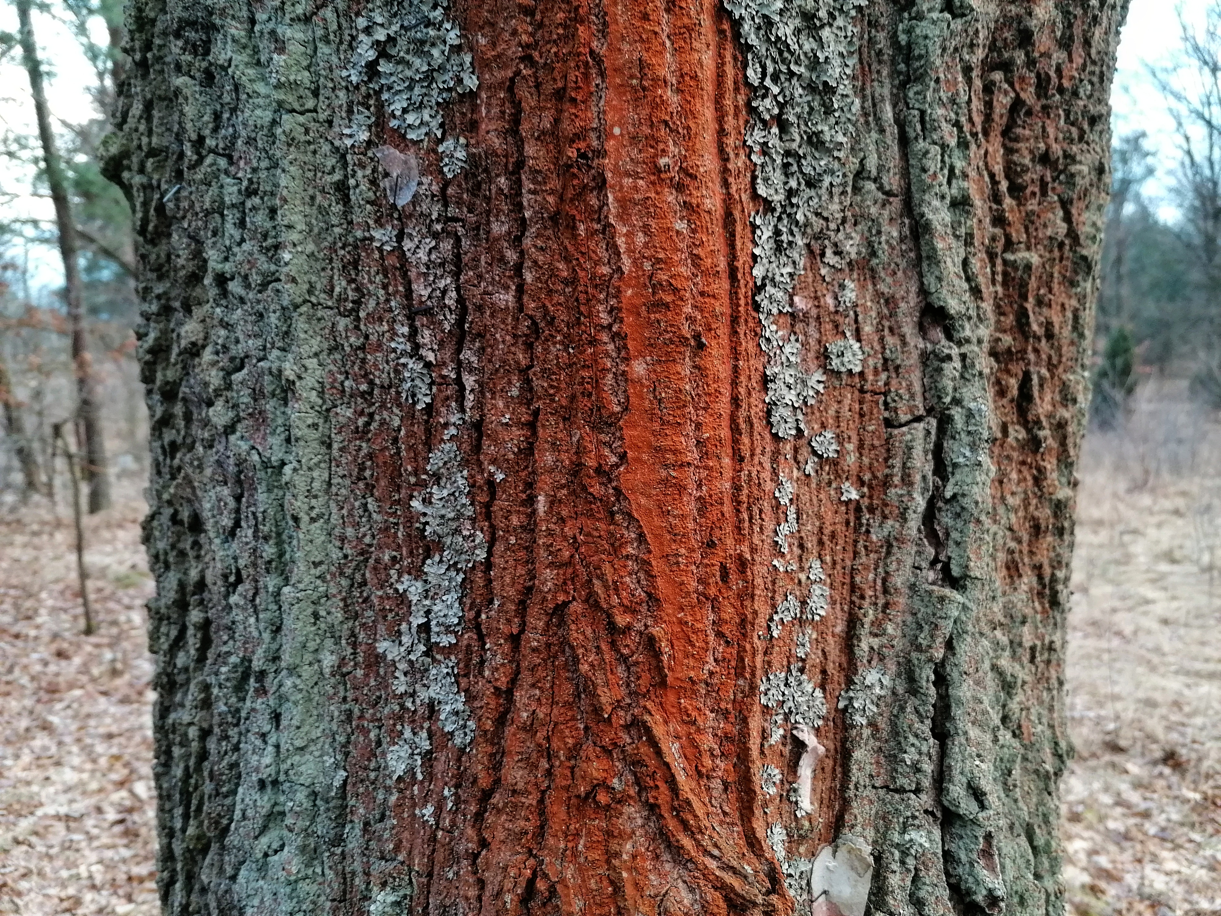 Dlaczego drzewa w lesie mają pomarańczowy kolor ? Trentepolia / Trentepohlia