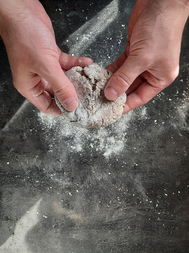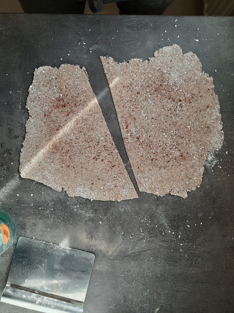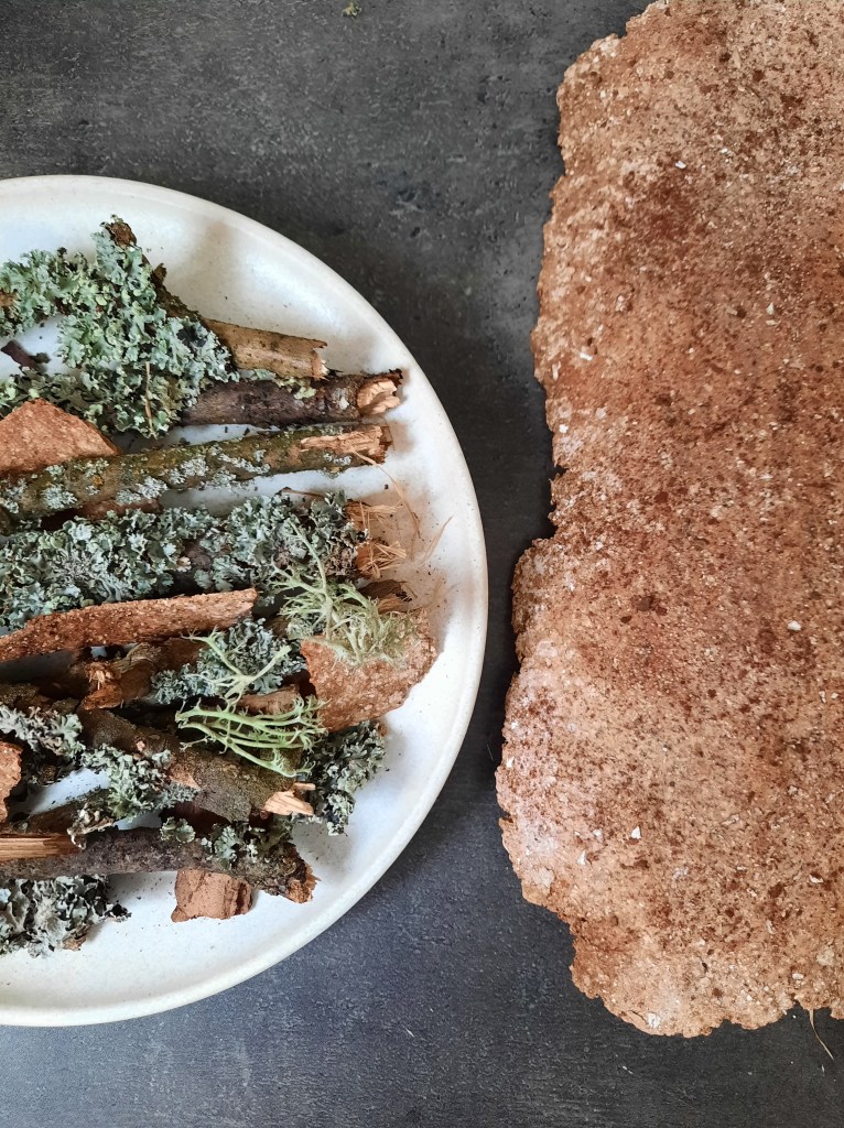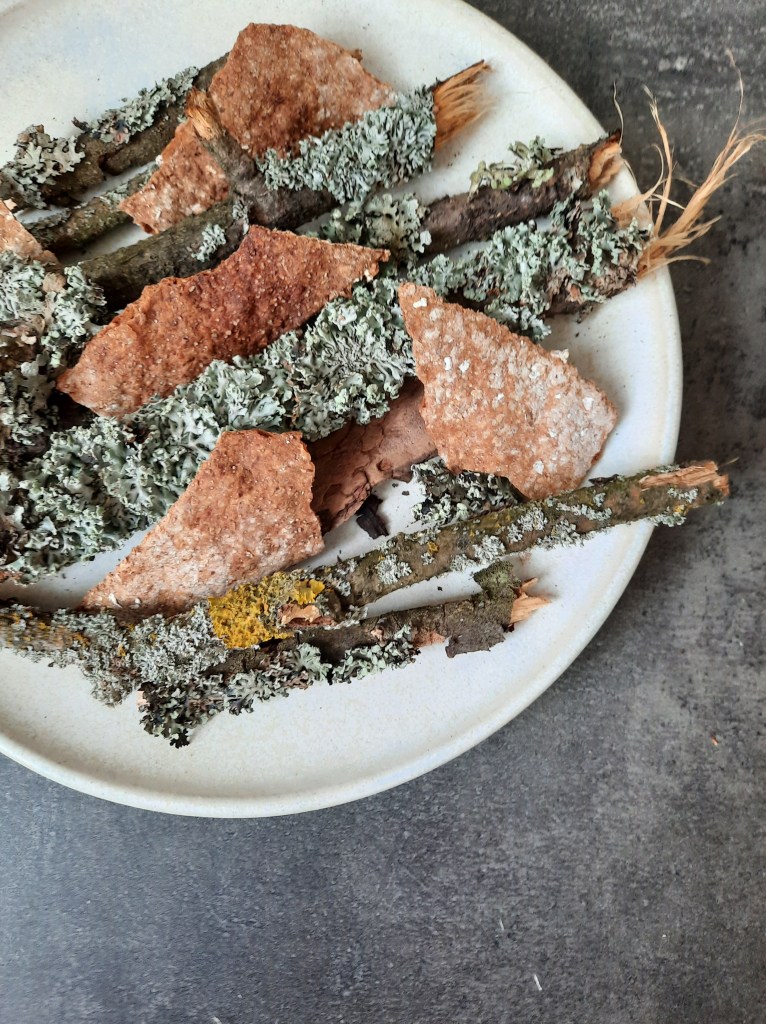 Przepis jest banalnie prosty, nie potrzebujesz robota kuchennego do wyrobu ciasta i myślę że każdy piec da sobie radę. Jestem w stanie stwierdzić że rozgrzane kamienie, albo blacha nad ogniskiem też dałaby radę, jeśli jesteś fanem wycieczek w teren i gotowania w plenerze. Od razu ostrzegam, nie wszystkim przypadnie do gustu. Jest chrupki, lekko kwaśny i od kory sosnowej może mieć gorzkawy posmak. Jednak z serkiem twarogowym odnajdzie idealny balans, hummus, pasty jajeczne to też dobra alternatywa. Przede wszystkim to dla mnie, moim zdaniem to dobra i zdrowa przekąska. Jeśli nie masz kory, możesz zrobić je z innymi przyprawami, nasionami.