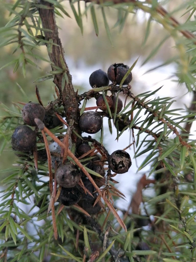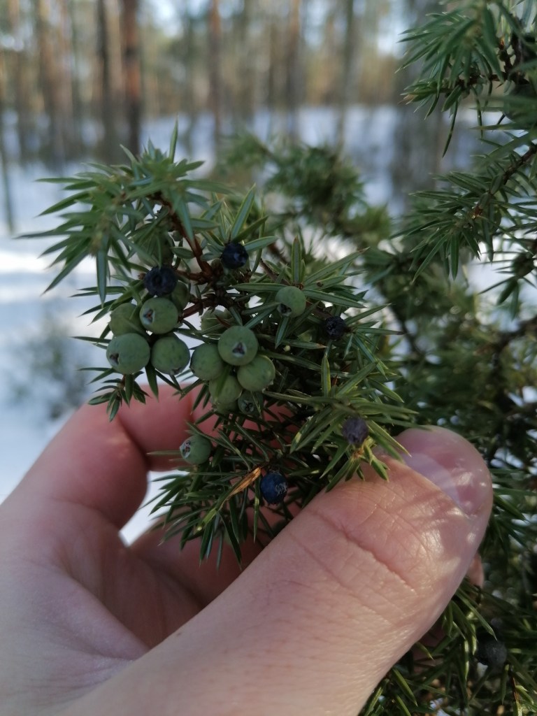 zielone niedojrzałe owoce jałowca pospolitego, mają cytrusowy posmak